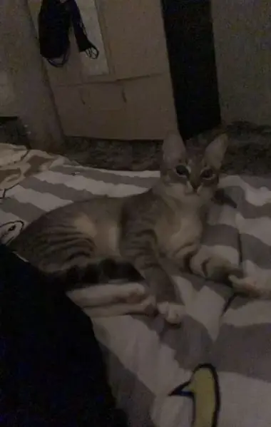 Найдена кошка на улице Побратимов 17. Цвет дымчатый, в полоску. Очень ласковая. На вид месяцев 5. Прошу откликнуться хозяев или может кто то захочет обрести друга. У себя оставить возможности нет.