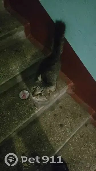 Небольшой серый в полоску, слегка пушистый котик. Очень ласковый. Знает лоток. Сам просился в подъезд. Попридержали его до появления хозяев. Кажется не кастрирован. Адрес указан не точный специально. Пишите и звоните 8-929-539-42-25. Хозяева найдитесь!!!