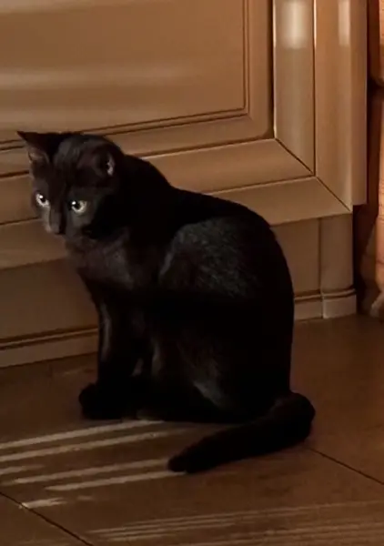 дымчатая кошка,возраст около 4 лет,на груди и животе белая полоска.была найдена в подъезде дома.