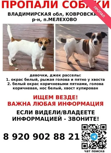 ️ Найден(а) собака Найден Джек Рассел, собака бегала утром одна в районе Улицы Шевлякова ️ +7 925 029-14-45 Юлия