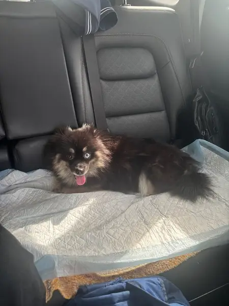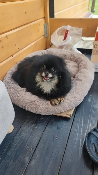 Найден шпиц, черного цвета, видно, что в возрасте. Бежал напуганный по дороге