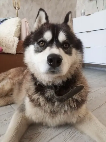 Хаски девочка, с красным ошейником. Возраст примерно пол года, очень игривая. Нашли 12.03.25 вечером около 21ч, возле дома. Набросилась с играми на мою собаку .