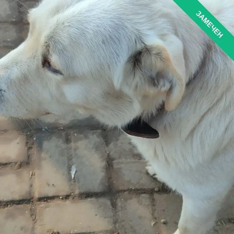 Белая шерсть, средняя размер, на шеи коричневой ошейник