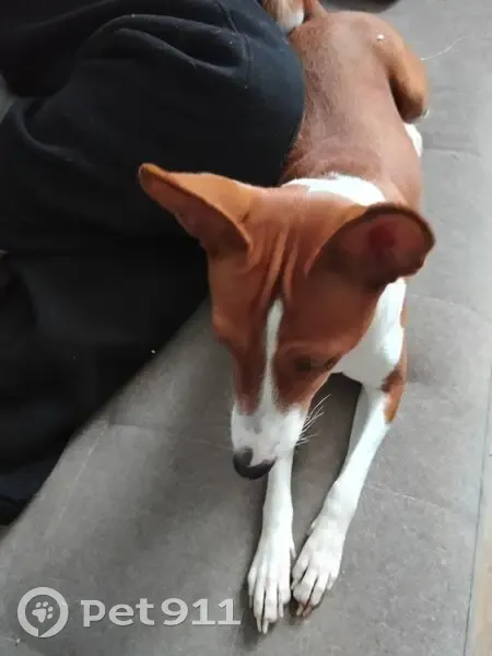 Рыжая с белыми пятнами, пугливая. Порода Басенджи. Сорвалась с поводка и убежала.. Если Вы увидите собаку, позвоните, пожалуйста, по номеру 89036846510