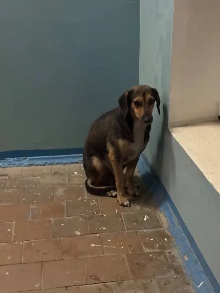 Напугана, но не агрессивна, щенок девочка с зеленой биркой на ухе, рост ниже колена