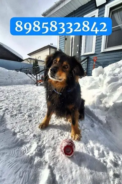 Сука черная с рыжим. Вырвалась из рук при игре с другой собакой. На поводке. Не агрессивна