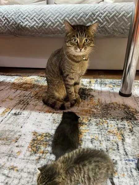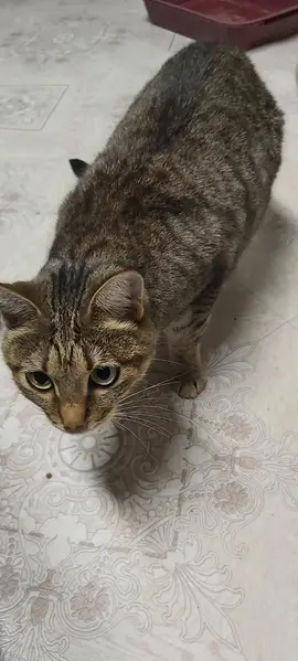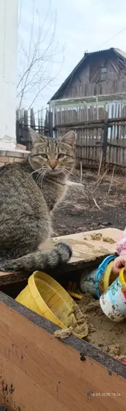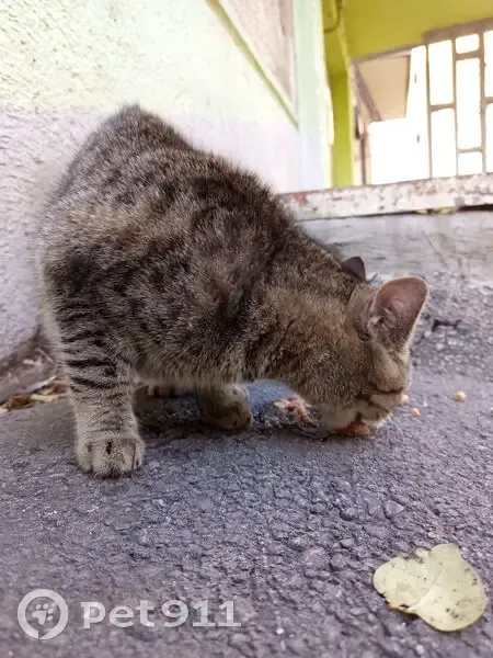 Особых примет нет. Обычная трёхцветная кошка. Очень ласковая и ухоженная. К себе забрать не могу, не разрешают, но выхожу ее кормить, поэтому кошечка не голодная. Кошка точно не взрослая, мне кажется ей где то год.