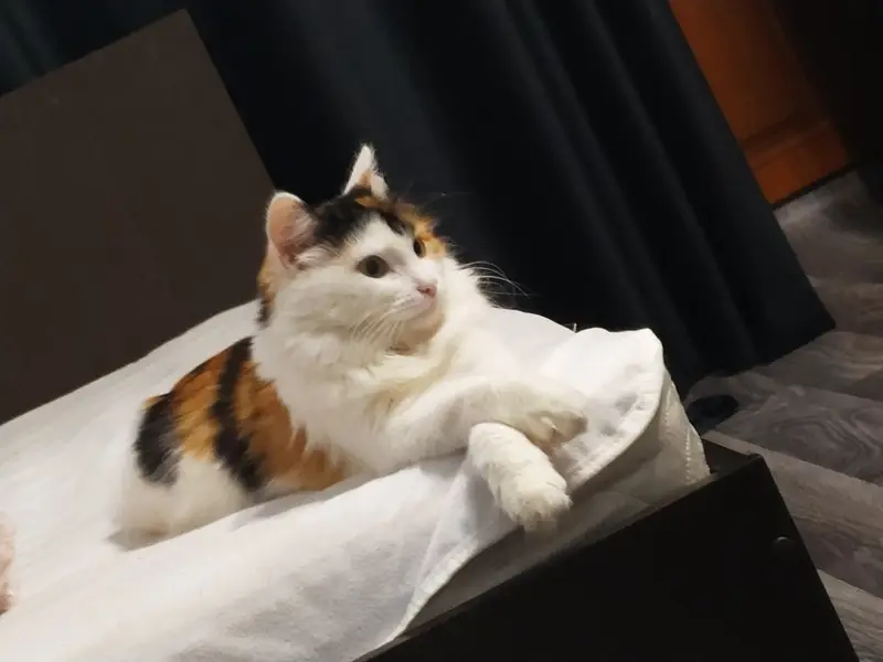 Кошка сидела около «Магнита» по улице 50 лет Магнитки, возраст 1-3 года, чистая, блох нет, на ней был одет самодельный ошейник из твердой голубой резины и куска проволоки. Были у ветеринара, все хорошо. Кошка явно не привыкшая к улице, лоток знает, ест хорошо, людей не боится, ласковая, очень умненькая. Если на объявится хозяин, ищем нового! Себе оставить никак не можем, аллергическая астма(