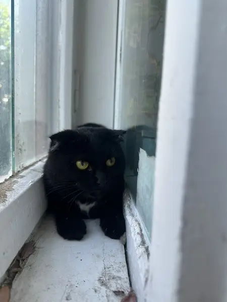 Чёрненькая, маленькая, как котёнок, на грудке белый ромбиком, в глазах слёзки почти всегда, плачет от радости, вкусненькое ей что-нибудь дашь, и слёзки льются. Тихая, даже мяу не кажет, наивная, но умная, доверчивая. Ушла перед дождём 7 августа, возможно потеряла дорогу домой, или же могла залесть к кому-нибудь в машину, и лечь там спать, она уже так делала, и тогда может её выкинули где-нибудь в городе.