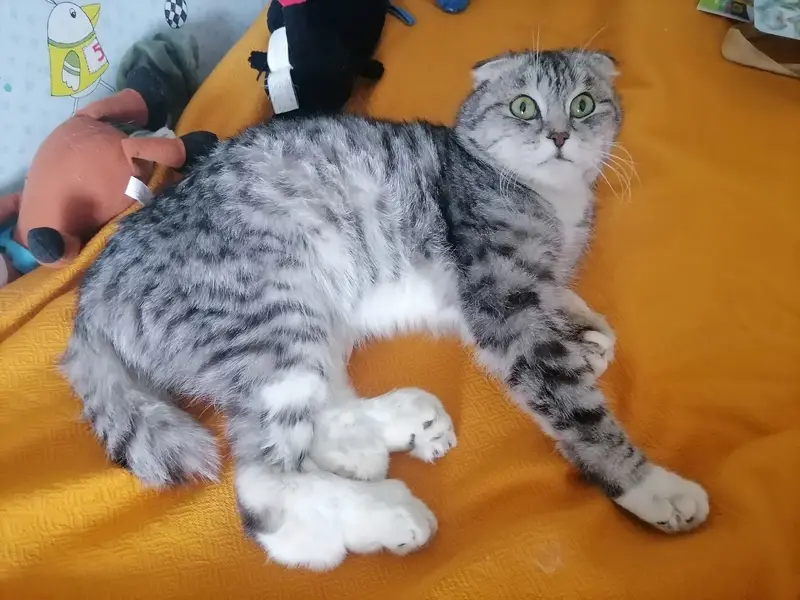 Мраморный шотландец,добрый,не шипит,мяукать толком не умеет!в руки просто так не пойдет.