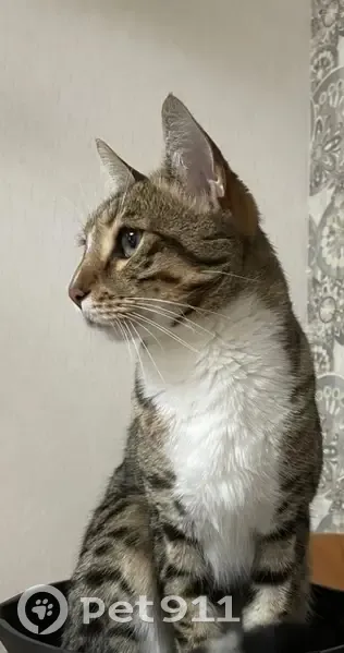 Пропал кот по кличке Лео, дома зовём Лёва, окрас похож на бенгальского кота. Три лапки в белых носочках, одна задняя полностью темная, белая грудка. Бока и живот побриты, т.к. проходил лечение и сейчас нуждается в дальнейшем лечении.