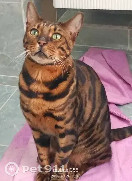 Порода : бенгал Окрас пятнистый и он такой золотистый Очень ручной и идет на контакт , на улице пропадет кот кастрирован Если кто то его видел ну или забрал к себе пишите Ватсап , звоните