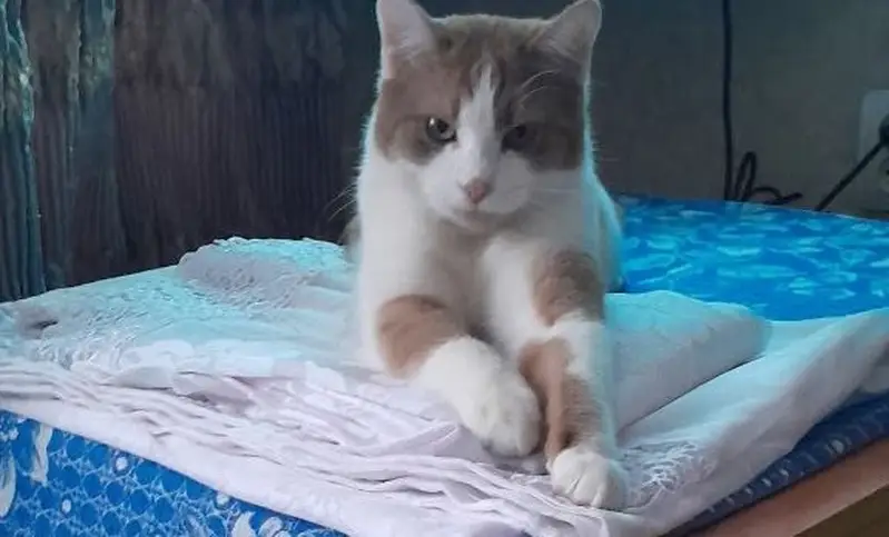 Кот, достаточно молодой, окраска на фотографии. Непугливый, в дом заходить не боится, идёт за людьми. Сидел у калитки уже долго, когда его нашли.