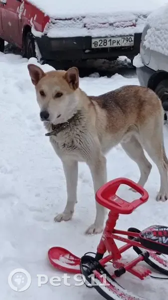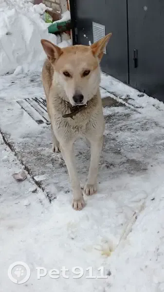 Окрас палевый, рыжеватый. В ошейнике. Спокойный, дружелюбный, очень контактный. Появился в пос. МЭЗ в декабре, бегает по дворам, просится в машину если видит рядом людей,может вставать на задние лапы для обнимашки после угощения.