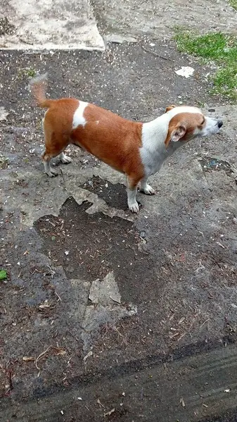 Порода Джек Рассел , на спинке два пятнышка как крылья , один черный ноготок на лапке . Очень добрая и я ласковая . Пожалуйста помогите вернуть собаку домой