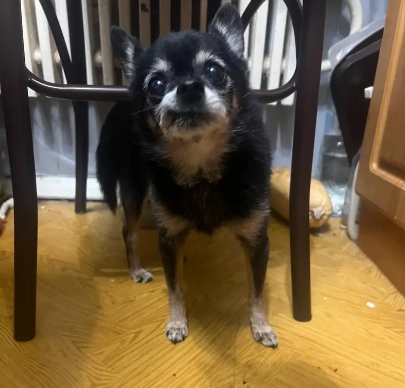 курносый чихуахуа, висячие уши, хвост бубликом.