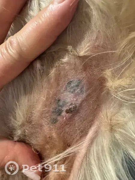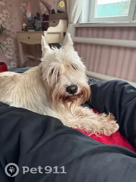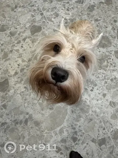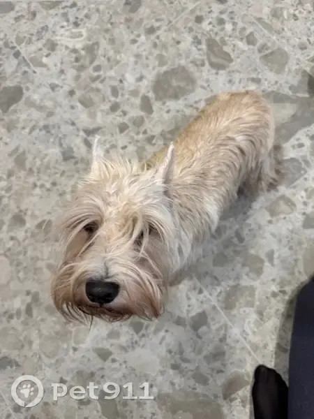 Собаку нашли между д Малая Дубна и д Трусово бежала по дороге рано утром , похожа на породу Вест хай Лэнд Уайт терьер, есть Клемо не четкое , последнее цифры 93, послушная