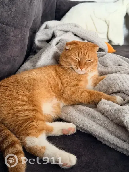 Окрас рыжий, вислоухий котик. Грудь, живот и лапки белого цвета. На шейке ошейник от клещей, фиолетового цвета. Не кастрированный. Живем в частном доме, кот гуляет на улице. 12 марта, вечером, громко мяукал и просился на улицу, выпустила. Март месяц, думала загулял парень. Но уже слишком много времени прошло. Думаю, что могли украсть (было один раз, дети мимо проходящие утащили) Все очень скучаем, двое дочерей ищут его и муж, который к животным особой любви не питает, каждый вечер ждёт, что кот придет с гулянки. Очень надеемся найти нашего умного добряка.
