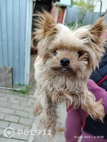 Найден на помойке йокширский терьер, кабель. Спокойный. На поводке ходит хорошо, но боится всего. На вид молоденький. Вернём только хозяевам при предъявлении документов на собаку и фотографии с питомцем.