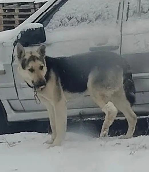 Найден пес в поселке Манский, в районе содружества. Не больше полугода, на шее старый кожаный ошейник.
