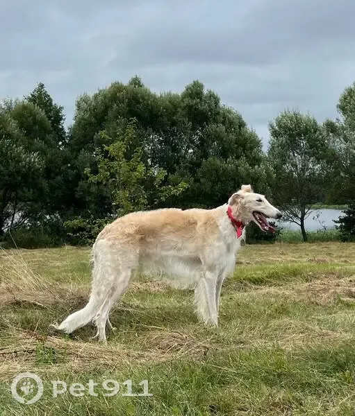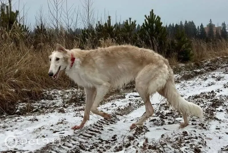 Русская борзая Имя: Еся, 2 года, окрас: белая с кремовым оттенком по спине и бокам. Очень добрая, лаять не умеет. Красный ошейник. Очень пугливая, к людям не подойдет. Если заметили или придержали, позвоните: 89913068574 89104248873 Чат поиска: https://t. Me/+jvtZF_DxPtJlMmJi