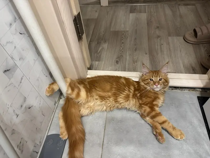 Пушистый кот, рыжего цвета. Длинный хвост. Испугался и выскочил из рук. Отзывается на кличку. Максимально домашний, далеко убежать не мог. Поиски длительностью в 4 часа не обвенчались успехом. Видимо испугался и спрятался.