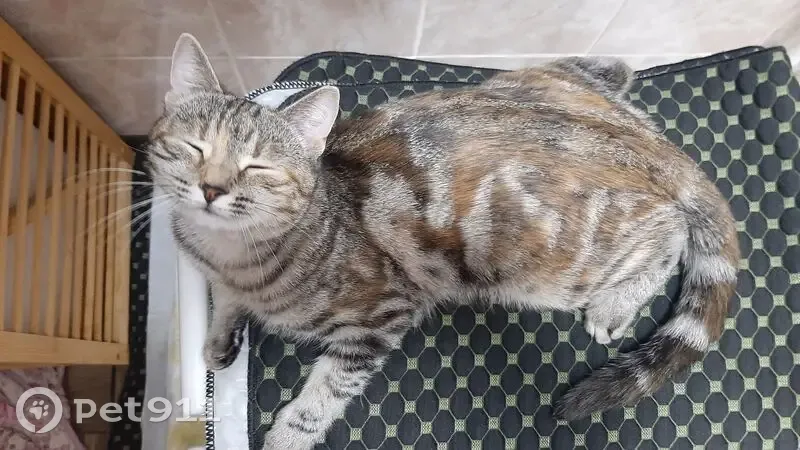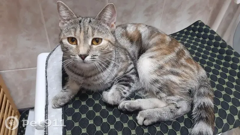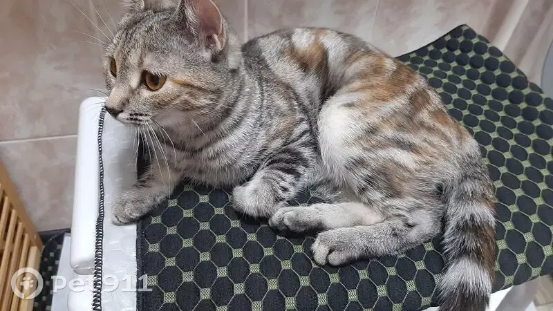 Пять цветов,видно на фото.Зелёный ошейник от блох.Вышла со мной проводить на остановку.Багира всегда меня провожала,затем возвращалась домой.Я приехала домой,Багиры нет.