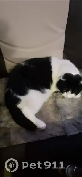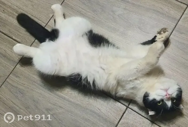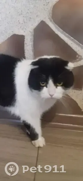 Шотландец, черно-белый окрас (черная шапочка, спина и хвост, белый живот, отличительные черты – хвост неподвижен и опущены уши), желтые глаза, розовый нос, кастрирован. На имя отзывается, но на руки может не идти. Пропал предположительно в районе 10-11 апреля 2025 года
