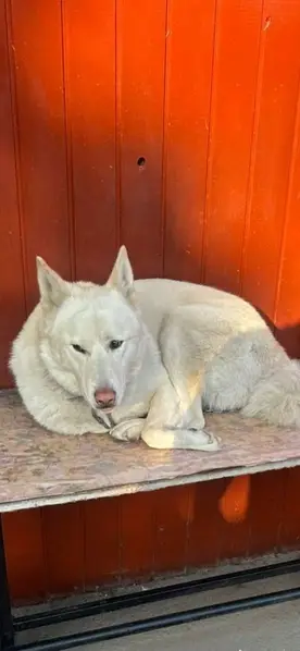 Друзья, прошу распространить в другие группы. На Академика Герасимова (жк юго-запазный, луговое) появился вот такой песель! Голубогоазый блондин. После НГ фейерверков. Хаска белая. Его где то искали. Хозяин отзовись!