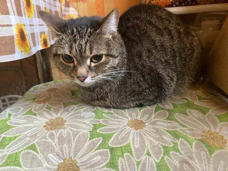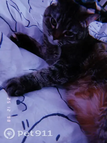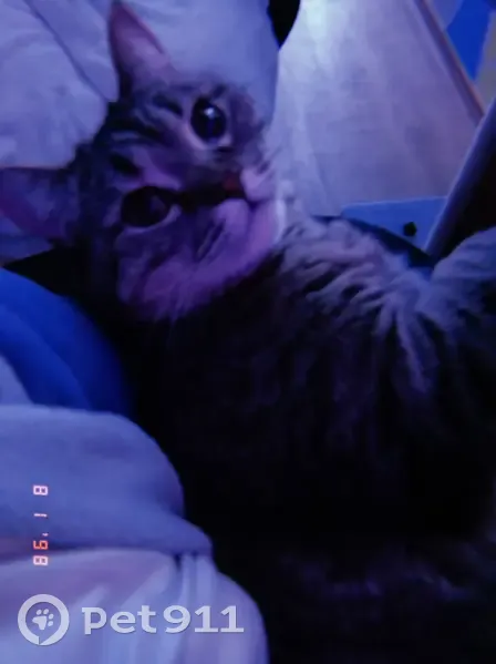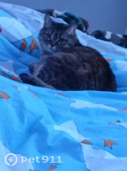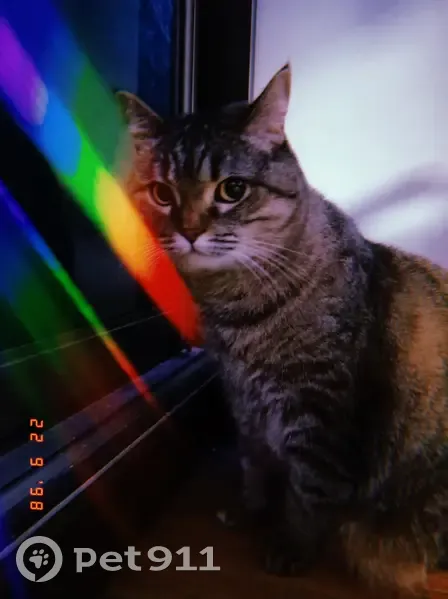 Пропала кошка. Окрас в полоску и разноцветный. Самка. Может бояться людей, животных и громких звуков (машин и прочего). Скорее всего где-то прячется, может откликаться на "кс-кс-кс". Каре-зеленые глазки. Возможно повреждены лапы (подозреваем, что кошка выпала).