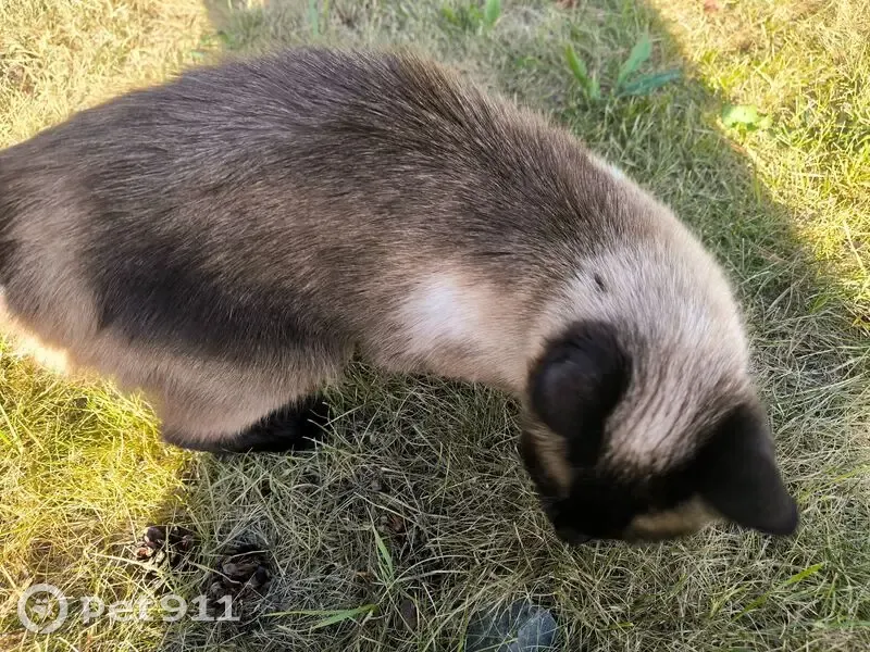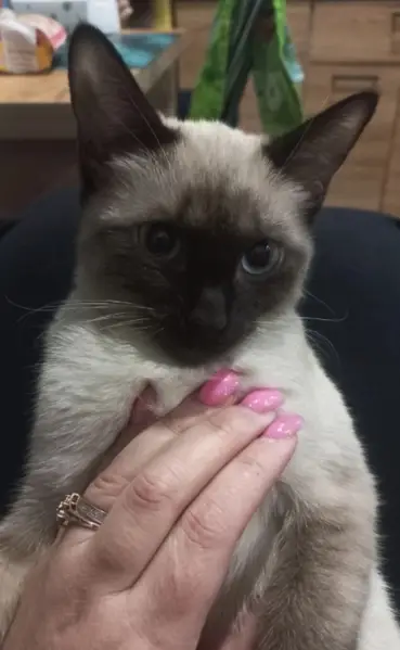 Домашняя, ласковая, трусливая, говорливая. Сидела на камушке недалеко от источников и Дворцов. Не очень любит сидеть на ручках, темная спинка Найдена возле Дворцов, указан телефон отеля