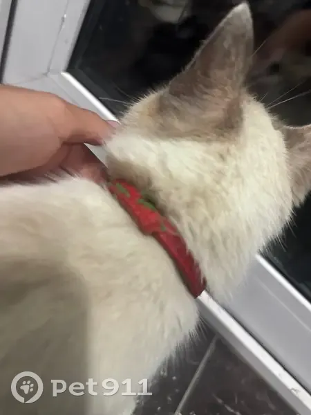 Кошка найдена в поле с 2умя котятами. У котят уже открыты глазки. Они сейчас с мамой, но тоже ищут себе любящих хозяев. У кошки имеется ошейник красного цвета, прошит зеленой ниткой. Ошейник не снимается.