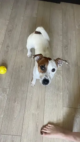 Джек рассел терьер, кобель белый с рыжим на вид года 3-4.Сидел сперва на Заречной 37,подобрали уже на Заречной 31