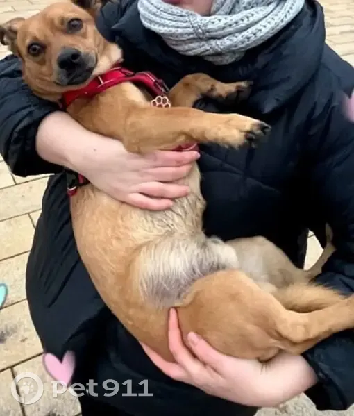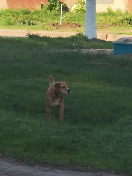 Рыжий, с белой полоской на груди, на хвосту чёрная полоса, за левым ухом маленький шрам, худой, длинные ноги, карие глаза. Порода метис, похож на спинчера. Рост ниже колена. Характер спокойный, на людей не агресирует. Вышел на прогулку и не вернулся.