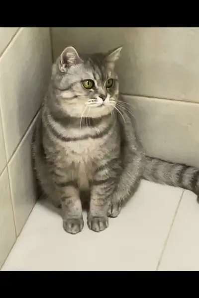 Серо белый британец,очень ласковый с желтыми глазами,камтрированный