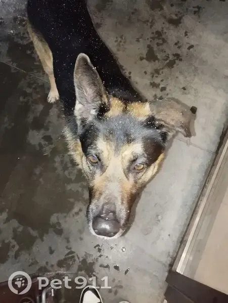 13,01. Найден пес похож на овчарку, крупный худой, на нем широкий коричневый ошейник. Одно ухо висит. Пристает к прохожим ищет кого-то. Далеко не уходит уже пол дня крутится возле светофора хакурате, титова угол.