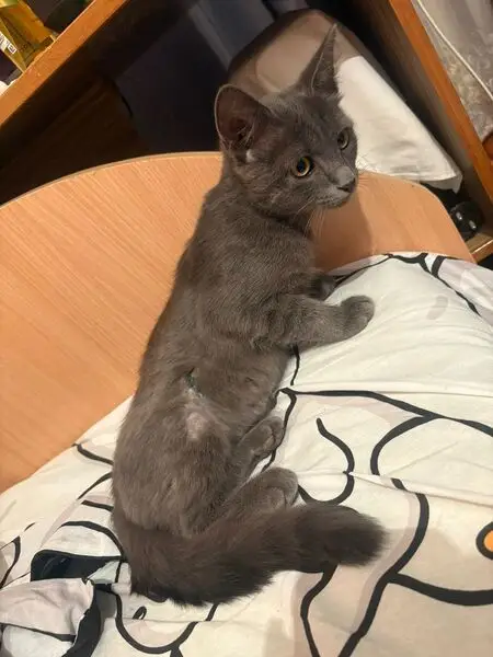 Кот темно серый,немного подрос чем на фотках,пропал на улице Кольцова,может быть ушел куда то дальше,может кто то подобрал,на спине в районе шеи немного рыжо