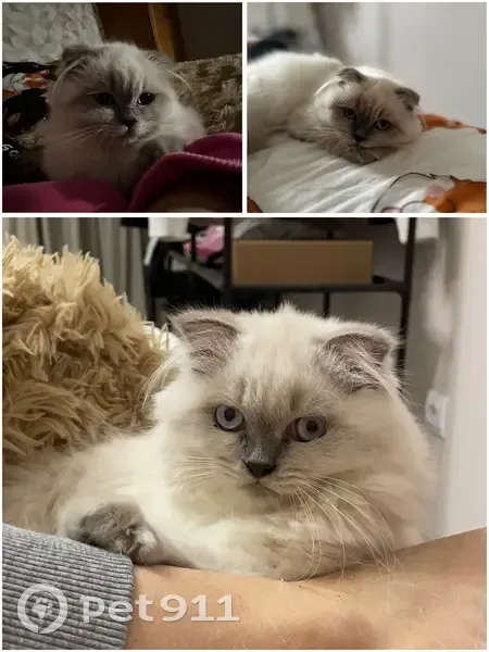 Девочка, молодая кошка, меньше 1 года. Беленькая, дымчатые мордочка, лапки и хвостик. Очень ласковая и милая, отзывается на имя. Пропала 1го марта по адресу: Республика Адыгея, город Майкоп, ДНТ Дружба, улица Нижняя, 13. Выбежала через дырку забора и пропала. Могла остаться у соседей. Кошка стерилизована, очень игривая. Порода: шотландская вислоухая. На 4й месяц упала на камушек, мог остаться шрам с правой стороны ближе к задней лапке. Серые глазки, немного косят