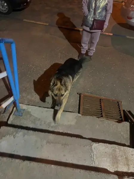 У него окрас черный и коричневый порезал об забор лапы и перепрыгнул через забор