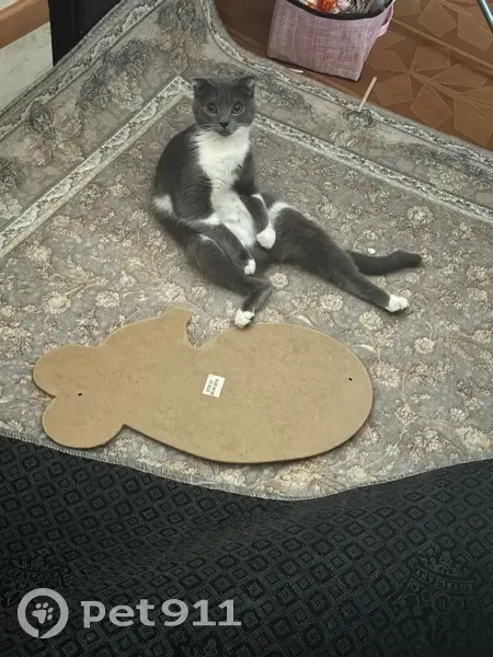 Серая, с белыми пятнами. Порода британка. Проводились ремонтные работы в квартире, работники не закрыли дверь кошка выбежала а этот момент. По приезду домой не обнаружили кошку.