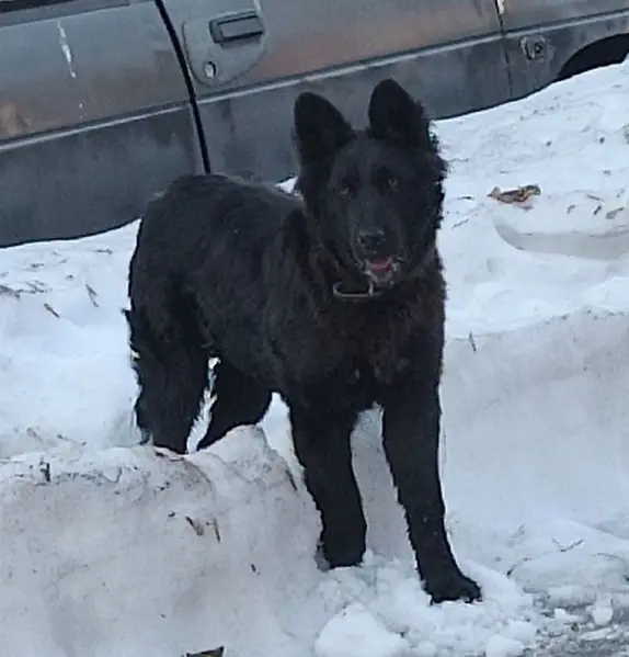 Потерялась немецкая овчарка, кобель, ошейник темно зеленый. Шерсть черного цвета, на грудке чуть выцветшая с рыжиной. Длинношерстный. Полтора года. Глаза карие. Ушки стоят. Сбежал с участка, д. Медвежьи Озера, Щелковский р-н Моск. Обл. Добрый, ласковый, любопытный, миролюбивый. Кличка Трезор
