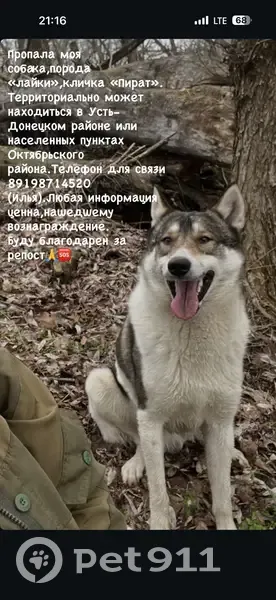 -Цвет глаз карие - Основной фон шерсти белый. - На спине и боках присутствуют крупные пятна чёрного и тёмно-коричневого оттенков. - Голова имеет тёмные участки с белыми вставками, особенно выделяется белый участок на шее и лице. - Конечности и грудь преимущественно белые. Потерялся во время охоты, после нее замело следы и питомец не смог найти хозяина.