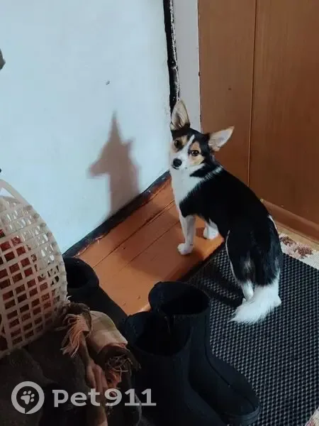 Окрас трехцветный чёрно-белый немного мордочка рыжая. Щенку пол года, порода маленькая не выше 30 см.Убежал со двора частного дома в 8 часов вечера 10.02