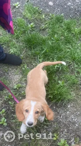На ней была розовая рулетка ошейник с сердечками он светиться ночью , систра упала за домом Дзержинского 4 и из рук выпала рулетка и она убежала была гроза
