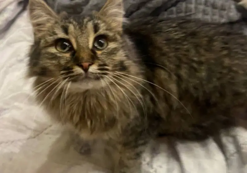 Окрас коричневый с полосками, пушистая в меру. В народе этот цвет называют шпротный. Говорят похожа на мейн-куна. Глаза желтые, вес примерно 3 кг, худенькая. На шее красный ошейник с гравировкой и airtag. Откликается на Касю, боится машин.