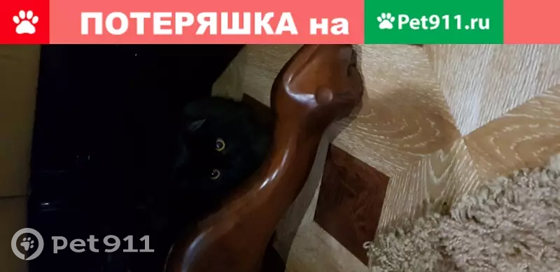 Кошка по кличке Муся. Пушистая, крупная, чёрной масти, с большими жёлтыми глазами. Пропала в районе ул. Парковой. Если кто-то видел, сообщите, пожалуйста. Нашедшему - вознаграждение.