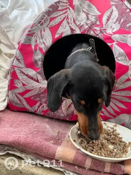 Черный окрас ,рыжая морда и лапки,сука ,похожа на таксу,есть ошейник ,ходит в туалет на пеленку ,ходит спокойно на поводке.Найдена в районе дороги на Пелагиаду магазин победа 26.02 в 12 дня