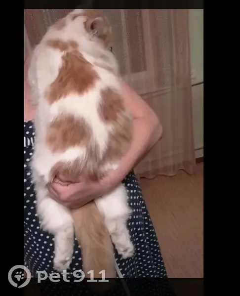 Кот кастрирован, окрас белый с рыжими пятнами,хвост как пипидастр, пушистый,глаза янтарные. Пропал утром 13-14 мая 2025г.В руки на улице не давался даже хозяивам. В 5 утра был во дворе,а днем уже не пришел.