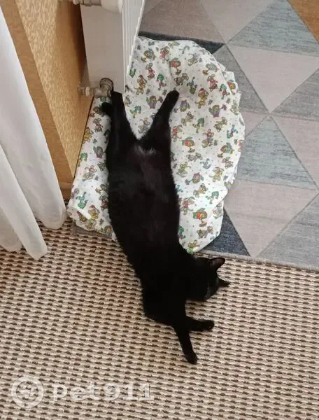 Чёрный кот, на нижней части пуза есть белый пушок. Кот ласковый, дружелюбный.Любит колбасу, рыбу, мясо