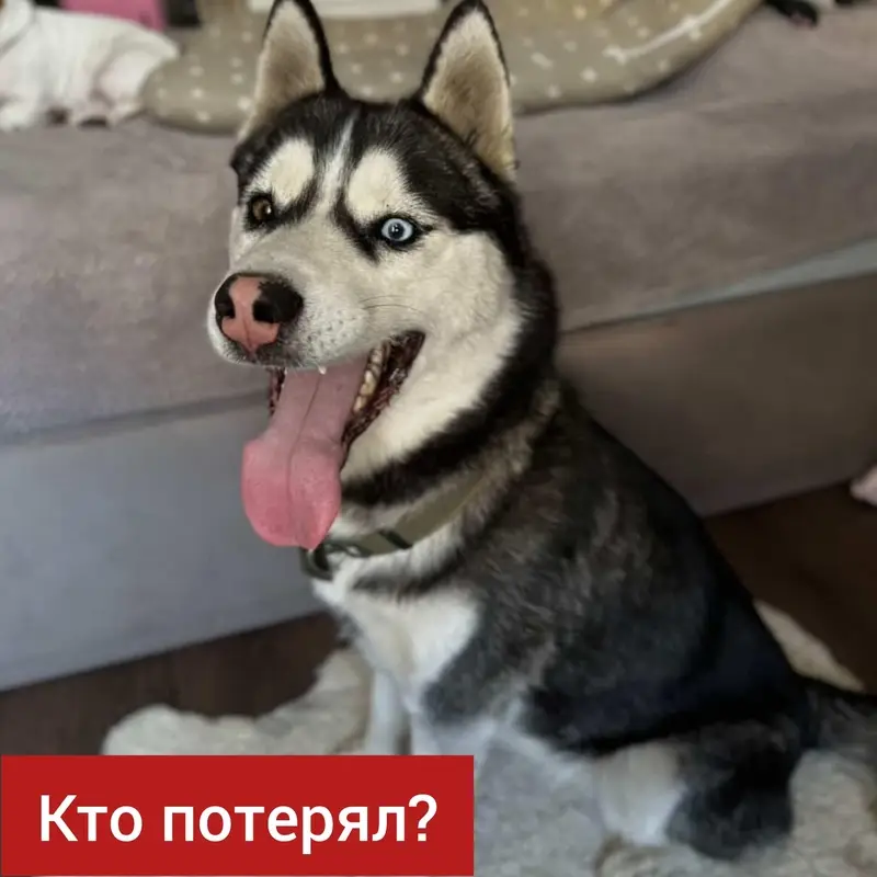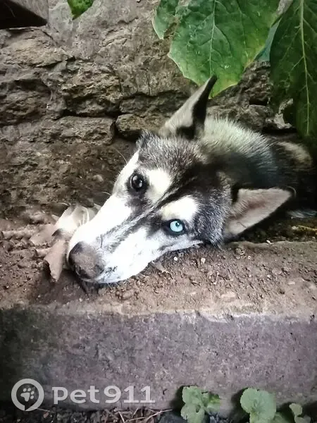 Хаска, голубые глаза/один наполовину коричневый, серо-белый окрас, недавно были роды, шрамик на носу небольшой, среднего телосложения, гладкая шерсть(линяет)